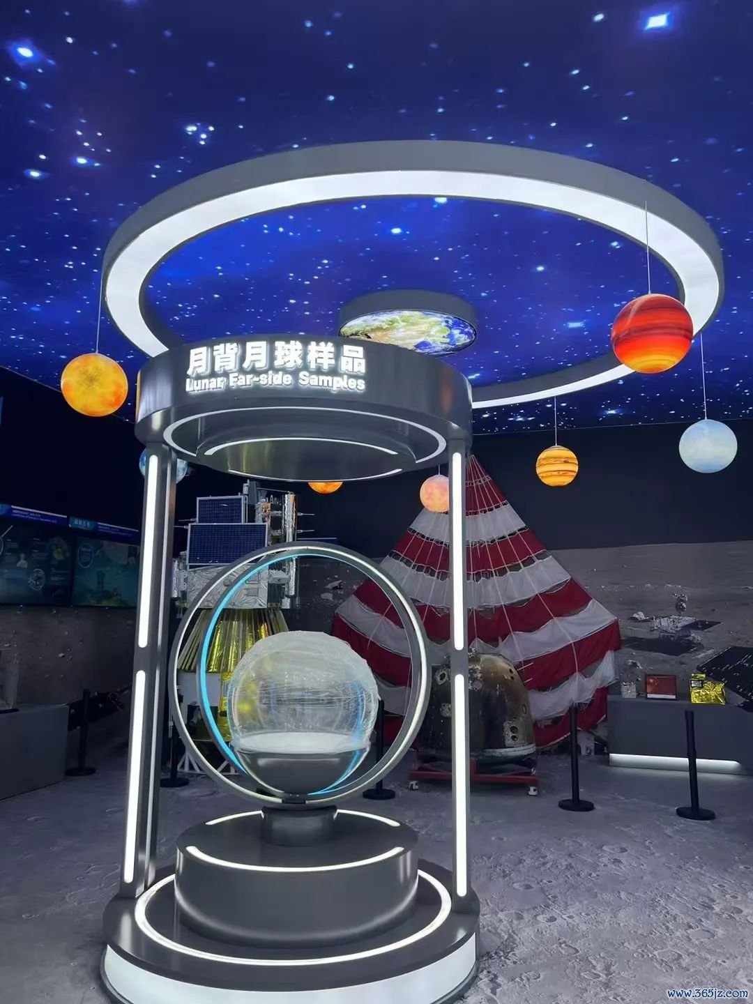 展厅中,公众能够近距离接触嫦娥六号任务采集带回的首份珍贵月壤,以及嫦娥六号任务的返回舱、降落伞、移动相机、月面国旗等珍贵实物。